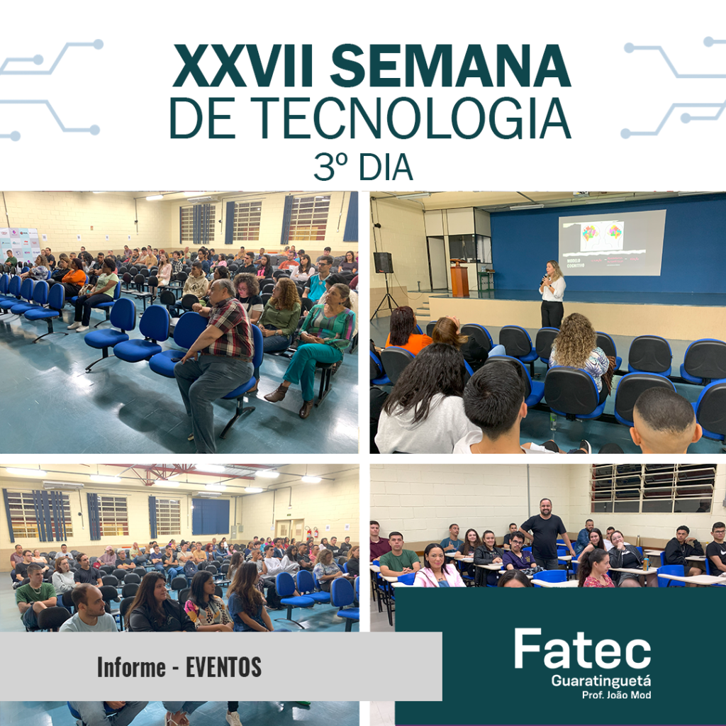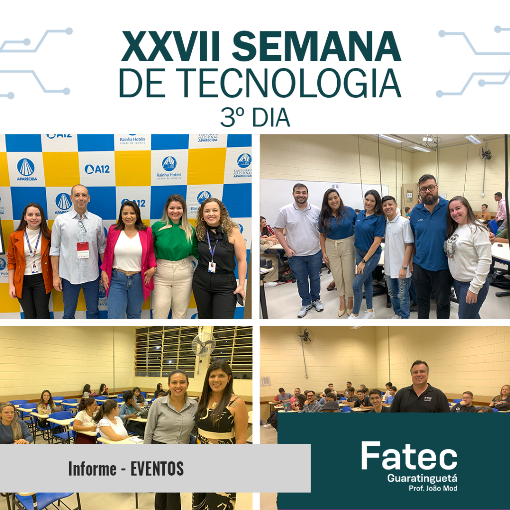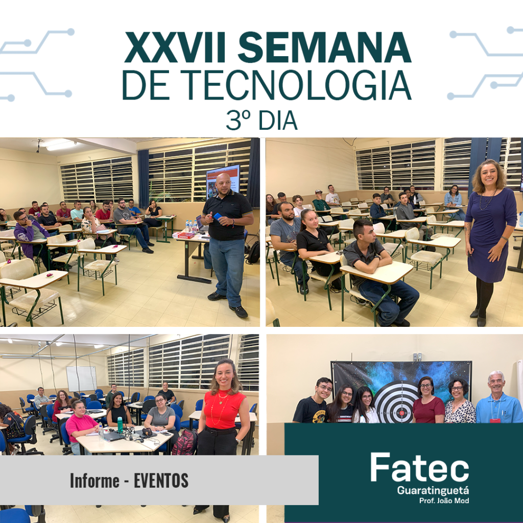 Na data de ontem, tivemos o 3º dia da nossa XXVII Semana de Tecnologia da FATEC Guaratinguetá. Mais uma excelente oportunidade para compartilhar experiências com profissionais das mais renomadas empresas em nossa região e destacados profissionais, que abrilhantam nosso evento.