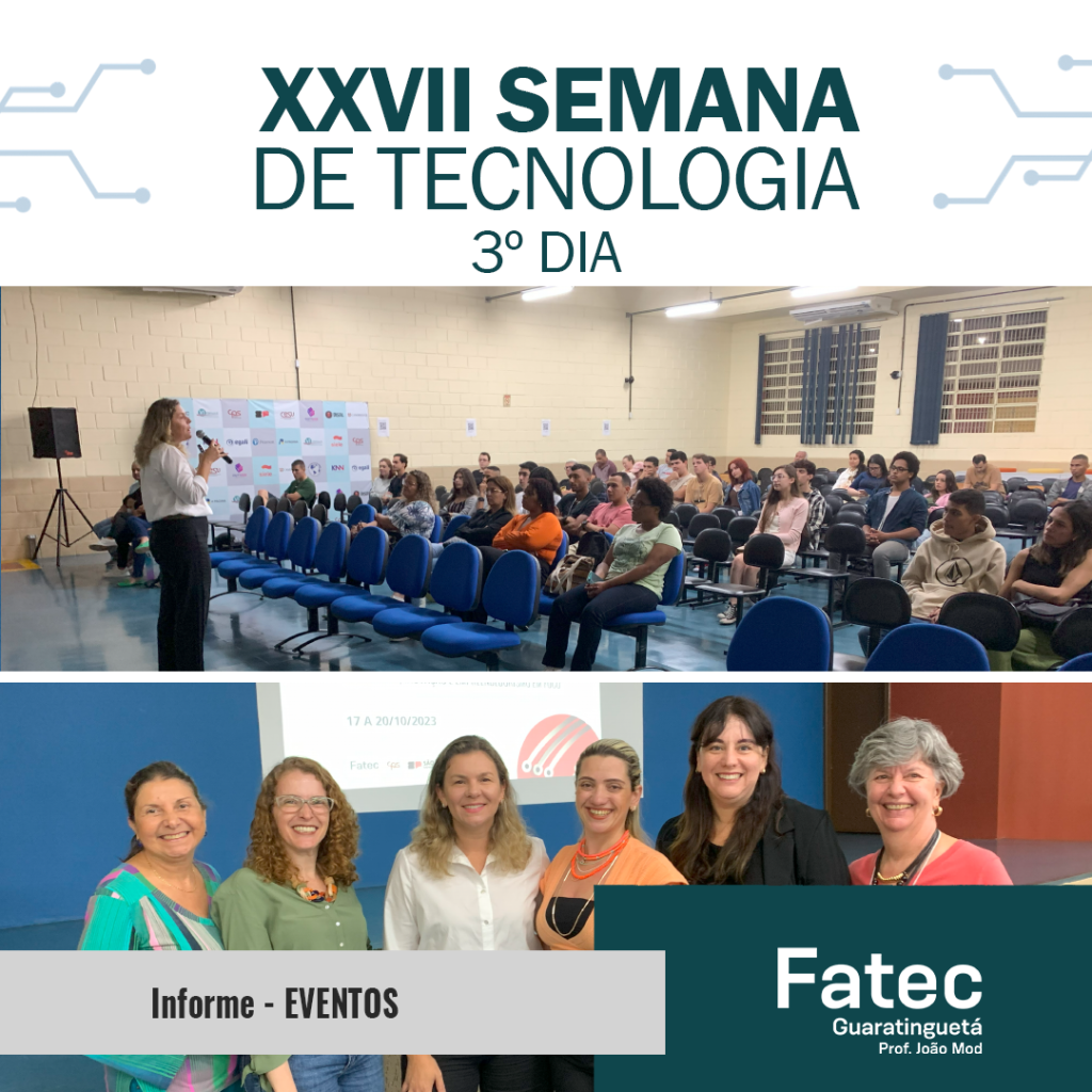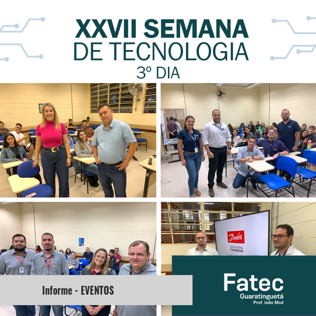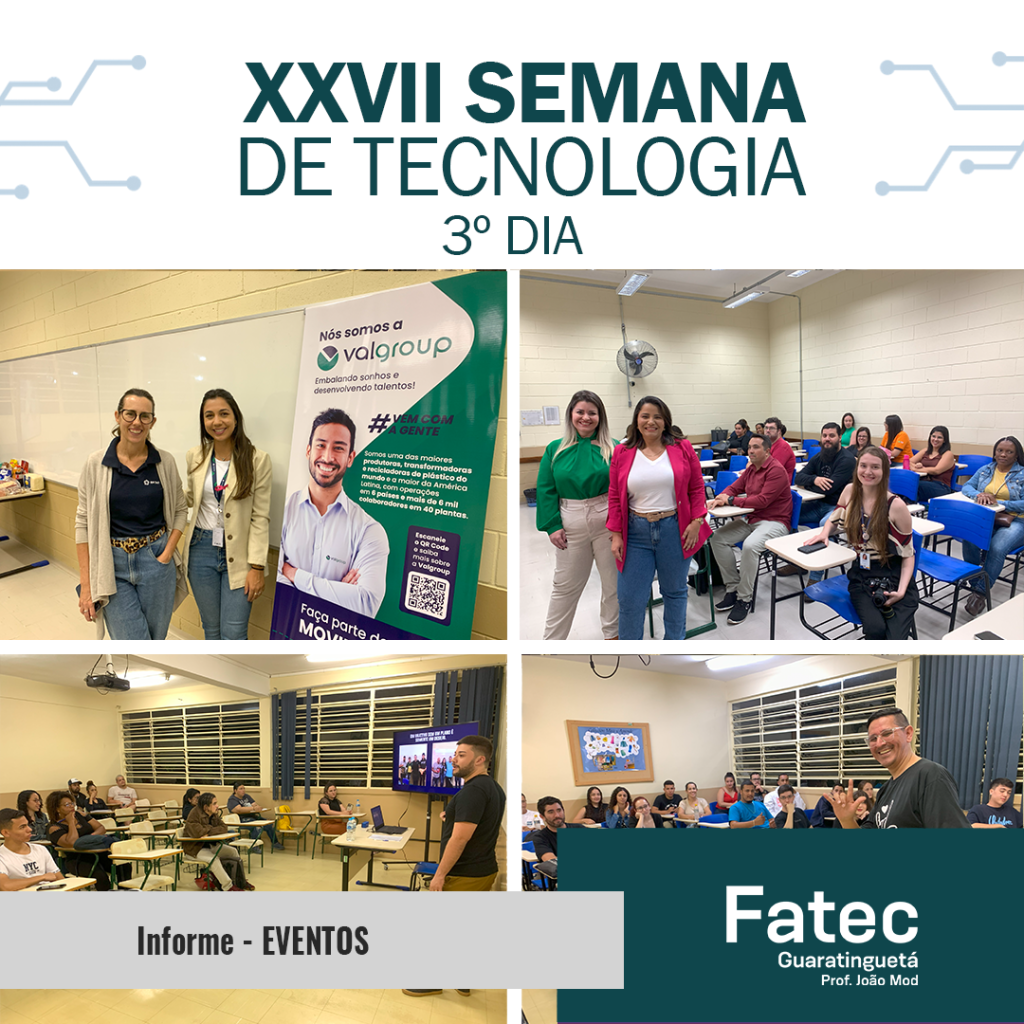 Na data de ontem, tivemos o 3º dia da nossa XXVII Semana de Tecnologia da FATEC Guaratinguetá. Mais uma excelente oportunidade para compartilhar experiências com profissionais das mais renomadas empresas em nossa região e destacados profissionais, que abrilhantam nosso evento.